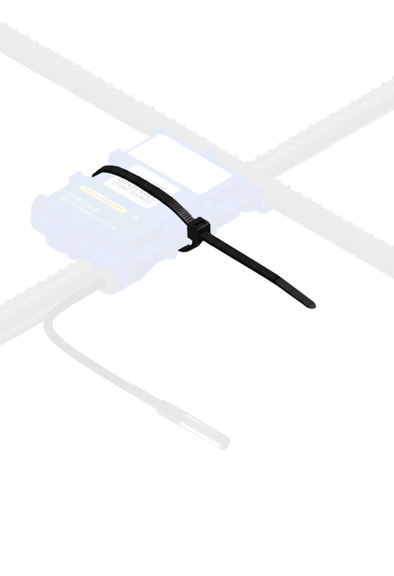 1. Attach the device to the rebar with the QR code facing upward